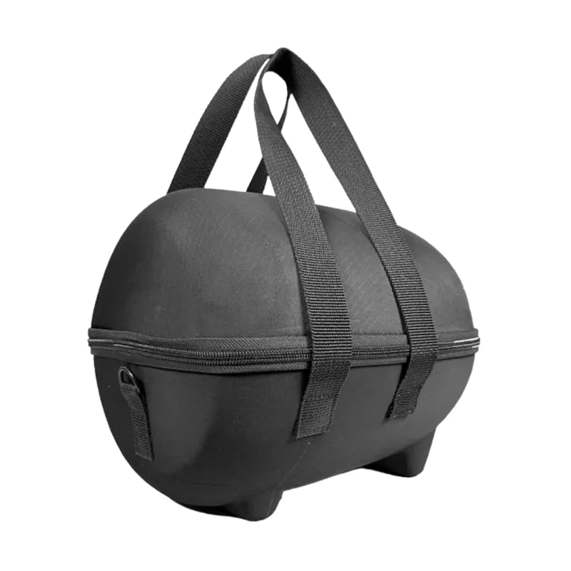 مهم نیست شما کدام سری از اسپیکرهای هارمن کاردن Aura Studio را دارید؛ کیفهای حمل دستی اختصاصی دارسو کاملا با آن سازگاری دارد. این کیفهای حمل دستی به شیوهای طراحی شدهاند که بدون هیچ نگرانی بابت کمبود جا، میتوانید اسپیکر خود را در آن قرار دهید. به علاوه شکل آن بهگونهای است که تمامی ابعاد و جوانب اسپیکر را به خوبی پوشش میدهد. ازاینرو اسپیکر شما در برابر هرگونه ضربه محافظت میشود. سطح خارجی هارد کیس اسپیکر هارمن Kardon Aura Studio از الیاف نایلونی تشکیل شده است که در برابر رطوبت، شوک، سقوط و ضربه مقاومت بالایی دارند. آستر داخلی نیز از پوشش نرم و مخمل خاکستری رنگ بهره میبرد. آستر مذکور با متریال EVA ساخته شده است. متریال EVA به دلیل بهرهگیری از ترکیبات خاص شیمیایی مزایایی نظیر: انعطافپذیری بالا، ضریب اصطکاک بالا، مقاومت در برابر نفوذ اسید و اشعه فرابنفش و… اشاره کرد؛ در نتیجه گجت شما در مقابل آسیبهایی مانند: خطوخش، ضربه، اشعهها و… مصون میماند. کیف حمل دستی اسپیکر هارمن آئورا استودیو از یک زیپ سراسری بهره میبرد. زیپ مذکور عملکردی روان داشته و سازوکار جایگذاری و خارجسازی گجت را آسان میسازد. دسته بادوام و مناسب نیز جابهجایی اسپیکر را راحتتر از قبل مینماید.