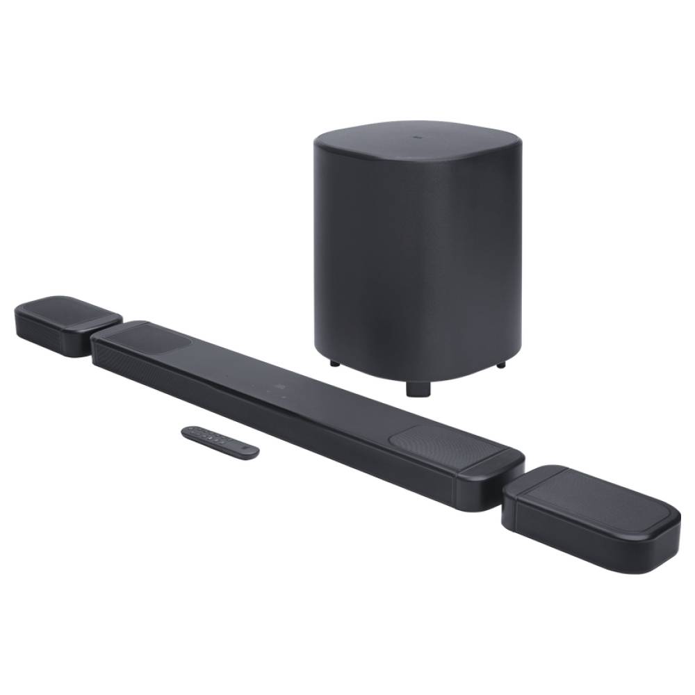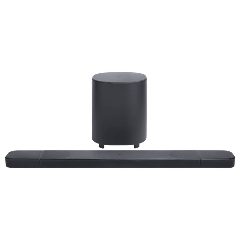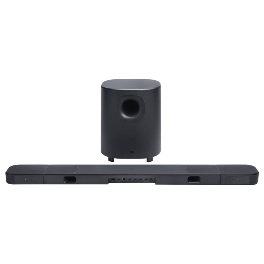 ساندبار JBL 1000MK2 با استفاده از چهار درایور سقفی بههمراه اسپیکرهای جلو و وسط، صدای سهبعدی Dolby Atmos را بهصورتی غوطهورکننده ایجاد میکند و احساس حضور واقعی در صحنه را منتقل میکند. فرکانسهای پایین توسط سابووفر 10 اینچی پوشش داده میشوند که بیس عمیق و قدرتمند را بدون هیچ افت کیفیتی ارائه میدهد.